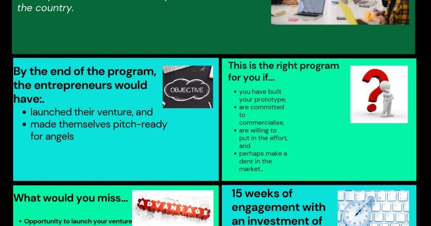 At the end of the program, successful teams should be able to pitch their business for raising funding with entities relevant to their type of business.